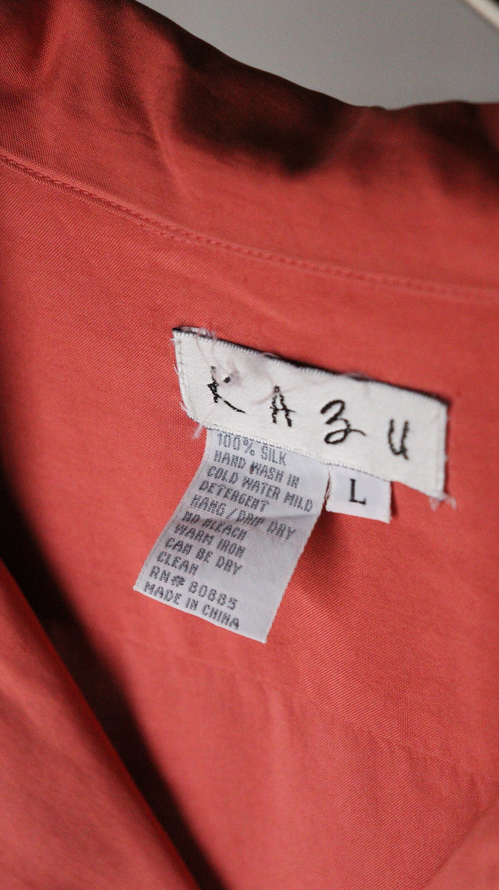 L/S salmon pink color silk shirt.