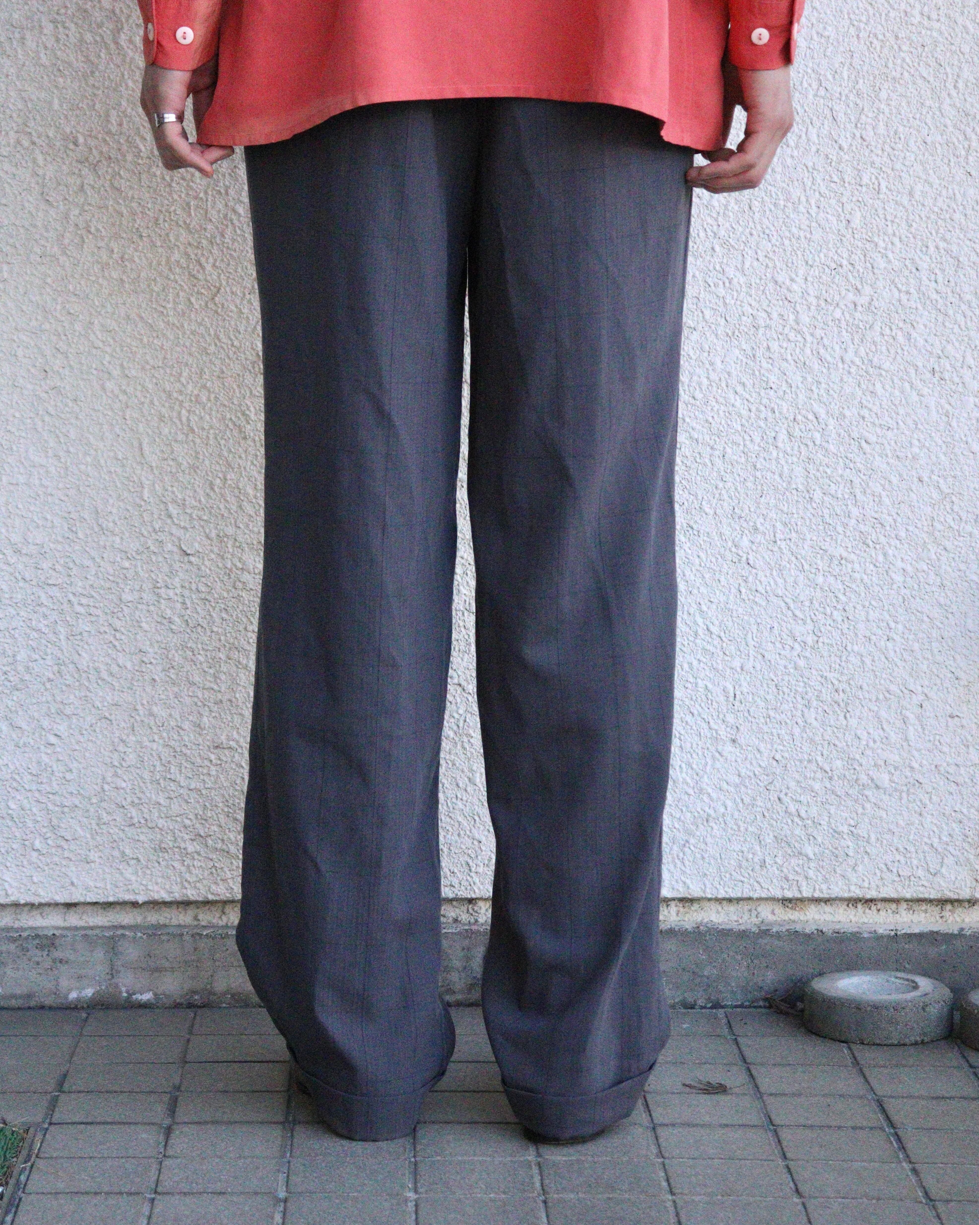 80's Check pattern wide slacks.