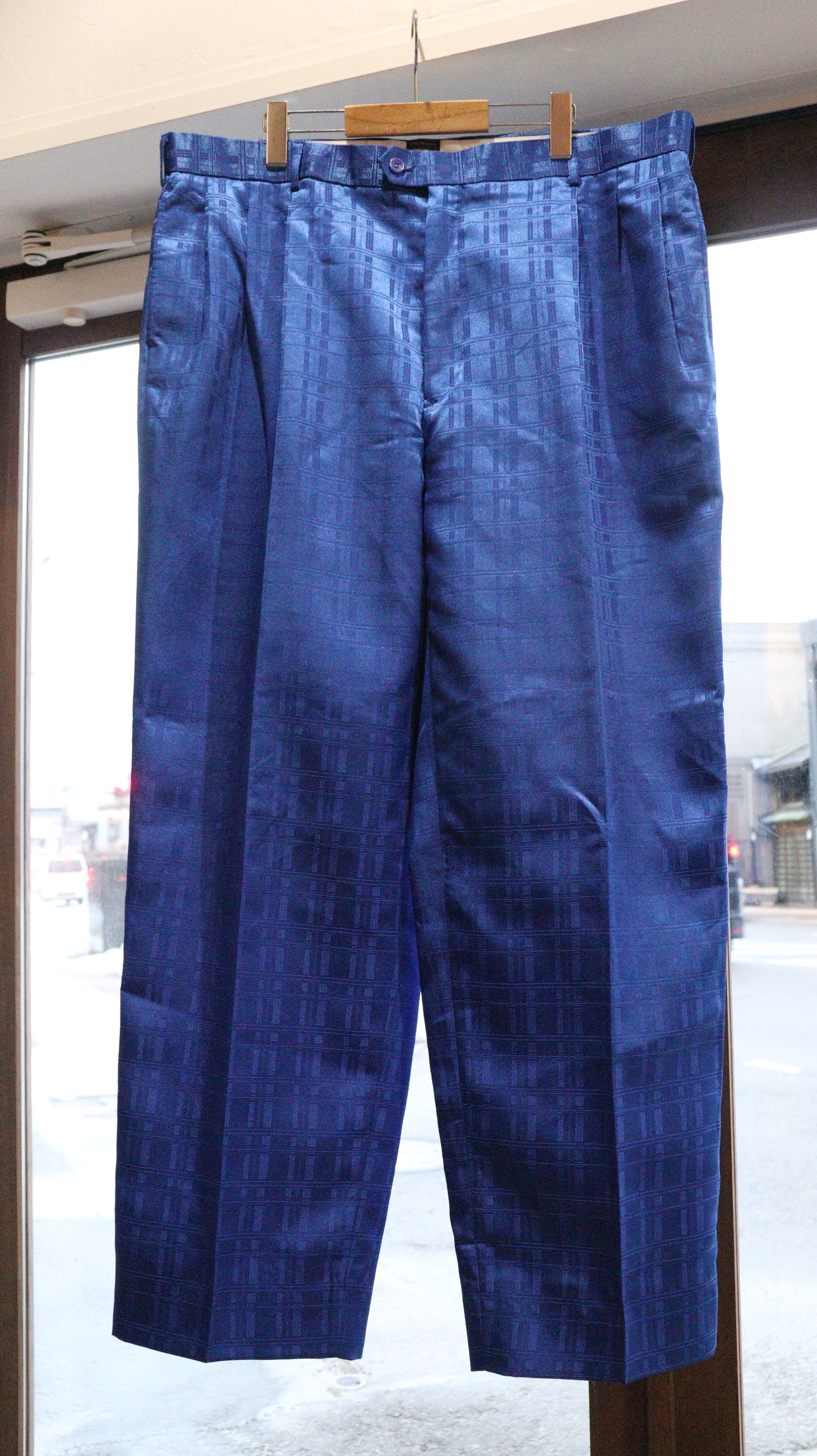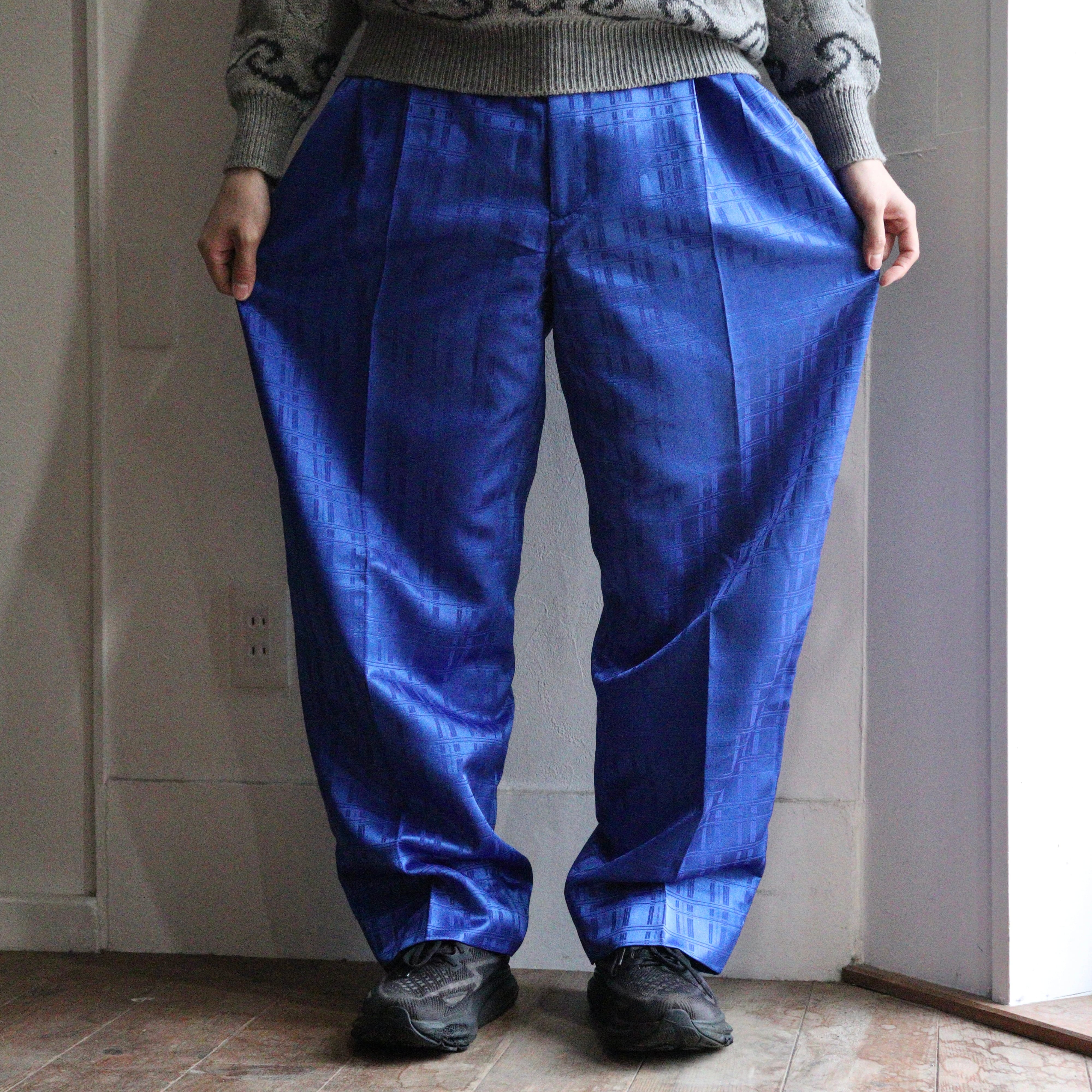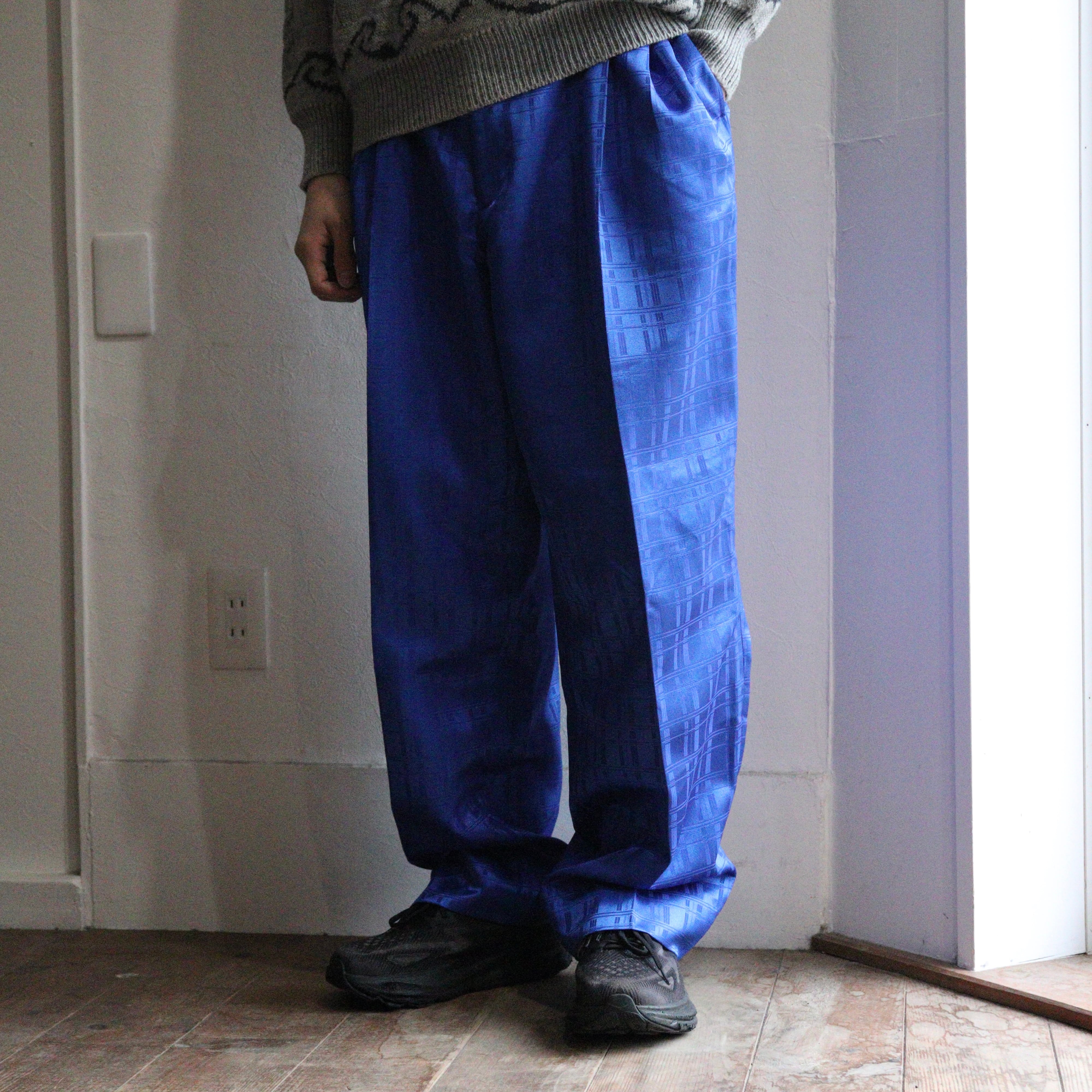 80's〜90's Chinese design blue color wide slacks.